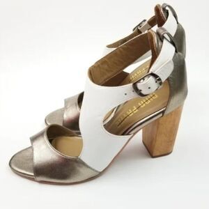 Anthropologie Nina Payne Pinta Asymmetrical colorblocked heels Sandals, Size 9