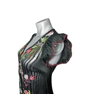 Anthropologie Not So Serious Black Beaded Embroidered Floral Black Dress Size 2
