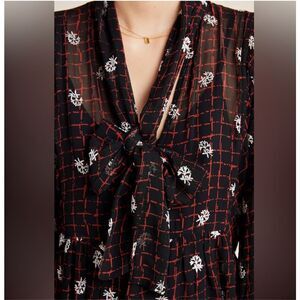 Anthropologie Not So Serious Elysia Blouse Size Small Black Red Business Office