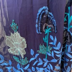 Anthropologie Not So Serious Embroidered Woodvine Swing Dress Size 6 Blue 6410