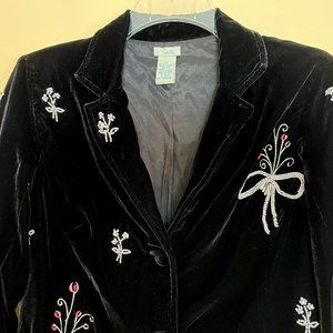Anthropologie ODILLE Beaded Floral Velvet Blazer Jacket Size 8 Whimsigoth Fairy