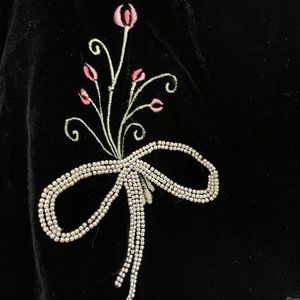 Stunning delicate bead work of baby faux pearls throughout, crystals and embroidered floral bouquets. Beautiful and Rare piece!