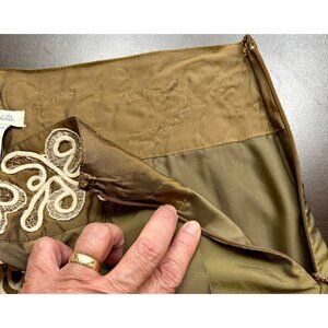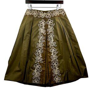 Anthropologie ODILLE Olive Green Preppy Indie Embroidered A-Line Skirt Sz 4