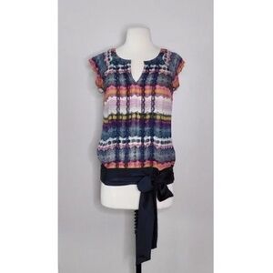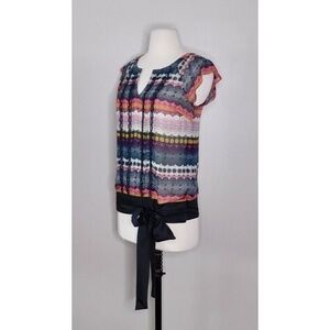 Anthropologie ODILLE Silk Ruffle Pleated Print Blouse Top Banded Hem Size 0