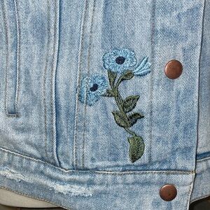 Anthropologie OLIVACEOUS Floral Embroidered Jean Jacket. Size Medium. Cotton.