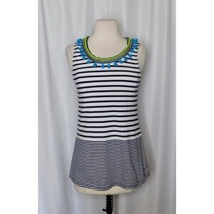 Anthropologie ONE SEPTEMBER Striped Tank Top Pom Poms Navy White Boho Small