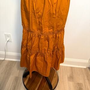 Anthropologie O.P.T. Daphne Smocked Tiered Maxi Dress In Marigold Size Large New