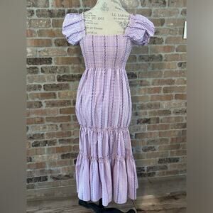 Anthropologie OPT daphne smocked dress tiered purple size XS lilac lavender midi