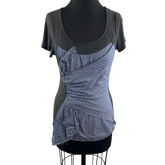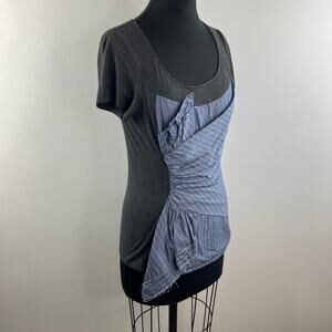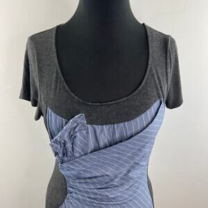 Anthropologie OS One September Striped Twist Layer Top Gray Blue Size S Small