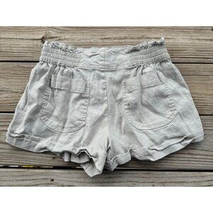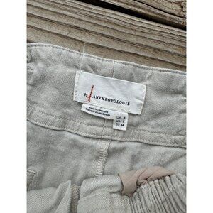 Anthropologie Oatmeal Beige Paperbag Shorts Women's Sz 2 Button linen Blend