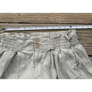 Anthropologie Oatmeal Beige Paperbag Shorts Women's Sz 2 Button linen Blend k2