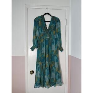 Anthropologie Odetta Ruffle V-Neck Midi Dress - Size Small Petite - NWT