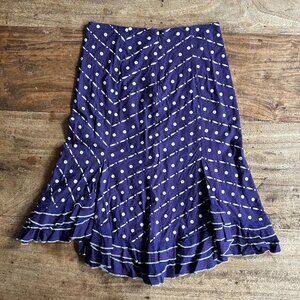 Anthropologie Odille Cotton & Silk Ruffle Bottom NAVY BLUE Midi Skirt SIZE 2 EUC