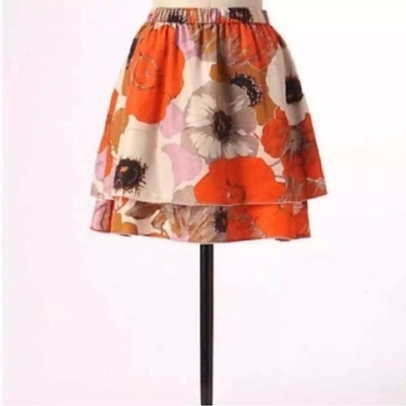 Anthropologie Odille Languid A-Line Layer Skirt Silk Floral Elastic Waist Size S