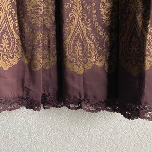 Anthropologie Odille Silk Blend Drop Waist Lace Trim Brown Gold Mod Midi Skirt 2