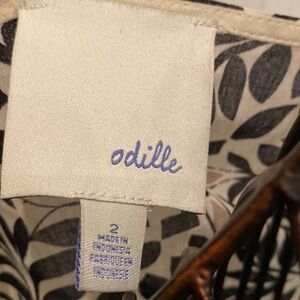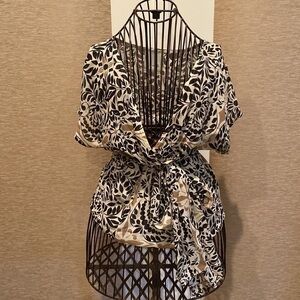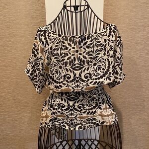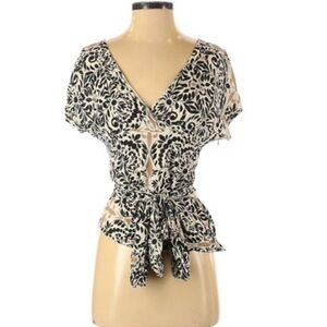 Anthropologie Odille white, black, and beige faux wrap top. EUC