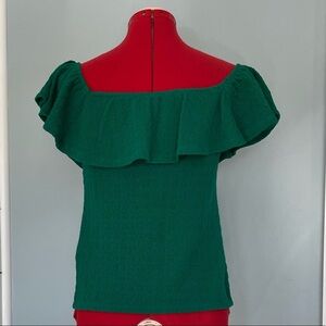 Anthropologie Off Shoulder Ruffle Green Top Sz XS