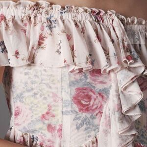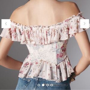 Anthropologie Off-the-Shoulder Floral Mesh Top