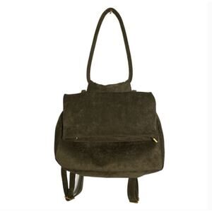 Can be used with straps as backpack or without straps as shoulder bag. Gold zippered top opening and gold zippered front pocket.