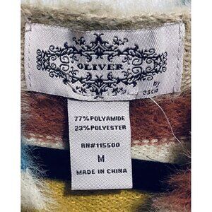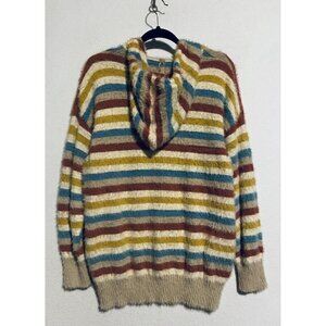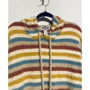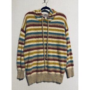 Anthropologie Oliver Sweater Womens Medium Rainbow Striped Fuzzy Hoodie Boho