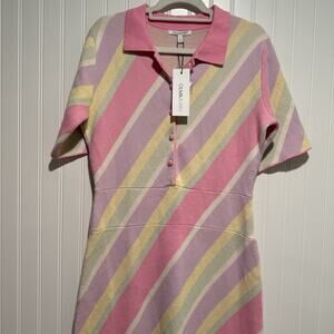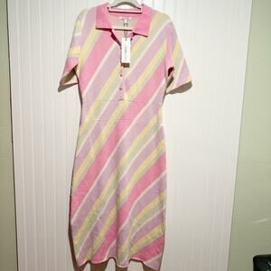 Anthropologie Olivia Rubin Macy Pastel Stripe Knit Dress Midi Length NEW Large