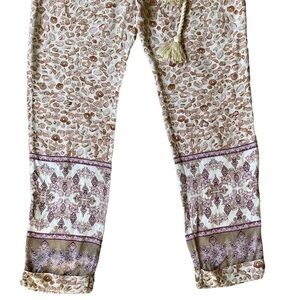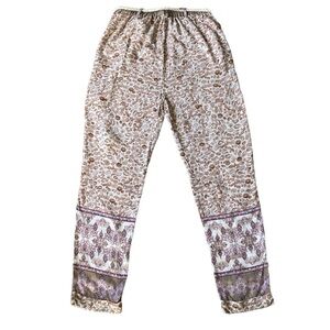 Anthropologie Ollari Boho Animal Print Pull On Tapered Realxed Summer Pants Sz M