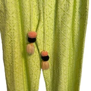 Anthropologie Ollari Chartreuse Lace Pom Pom Wide Leg Pants MED NWT