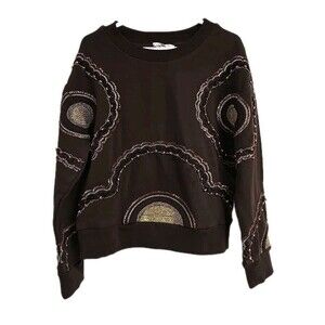 Anthropologie Ollari Embellished Pullover Sweatshirt Brown 100% Cotton Womens L. Condition is New with tags.