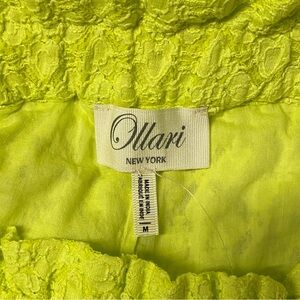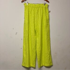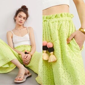 Anthropologie Ollari Lace Wide Leg Pants Chartreuse Lace Pompom Tassel Medium