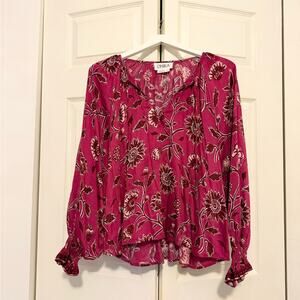 Anthropologie Omika Salena Peasant Blouse Pink Floral V-Neck Flowy Blouse Small