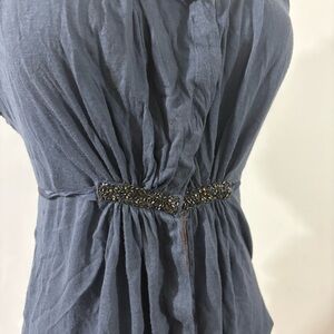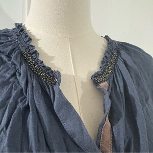 Anthropologie One September Beaded Tie Front Blouse Blue Sz Pet. Boho Fairy Y2K