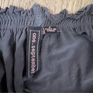 Elevate your wardrobe with this stunning One September blouse from Anthropologie. The beaded tie front design adds a touch of bohemian charm to the classic blue color, making it perfect for any occasion from travel to parties. The gathered and embellished accents give this blouse a whimsical and fairy-tale like vibe, while the 3/4 sleeves and V-neckline keep it classy and preppy.