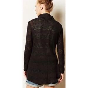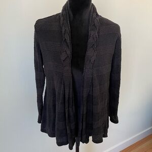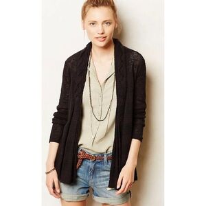 Anthropologie One September Black Fly Away Braided Collar Open Cardigan Size L