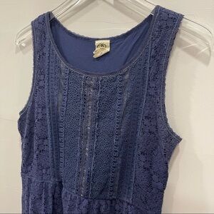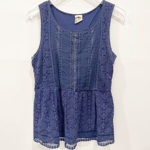Anthropologie One September Blue Sleeveless Lace Crochet Tank Top Medium