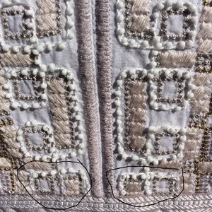 Cute sleeveless cream top with white and gold beading on front. Per the last pic it shows some beads missing otherwise in great pre-owned condition. No stains, tears or holes. Approximate measurements: bust 17" across from armpit to armpit and length 29".