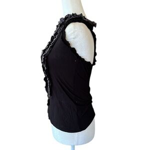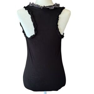 Anthropologie One September Grey & Black Ruffled Tank Top Size Petite. Tuxedo Style Ruffled, Razorback and V-Neck. Good pre owned condition