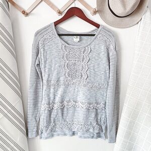 Super cute purple long sleeve crochet front sweater. Lightweight.