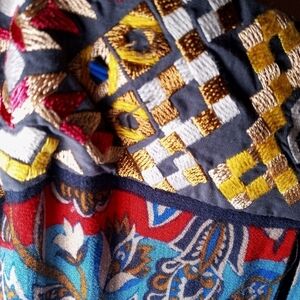 Anthropologie One September Retro Bohemian Dress. Adjustable straps. On the back there is one panel with missing beasing. Gently used.