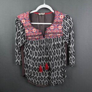 Anthropologie One September Top XS Ikat Boho Peasant Artsy Sheer Back Statement
