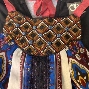 This Anthropologie One September sleeveless tunic top in XS features intricate beading, bold bohemian motifs, and a tie-back detail. Lightweight and stylish with a statement design.