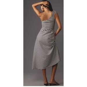 Anthropologie One Shoulder Gingham Midi Classic Dress Sz Lg NWT Length approximately 48 inches Arm pit to arm pit 19 inches