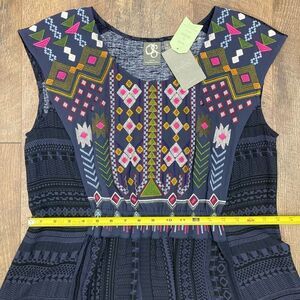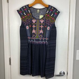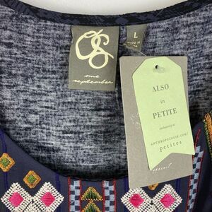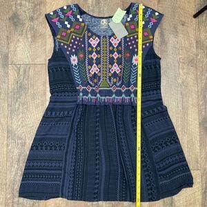 Anthropologie One September Barranco Embroidered Tunic Navy Boho Geo Cottage - L