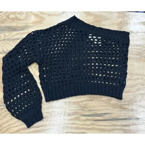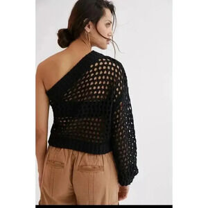 Anthropologie One-Shoulder Crochet Sweater Open Stitch Black Top ONE SIZE NEW