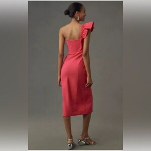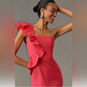 Anthropologie One-Shoulder Ruffle Linen Column Midi Dress size XL new in pink