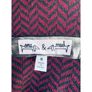 Anthropologie Oona and Maud Maroon and Black Chevron Knit Moto Jacket Size Small