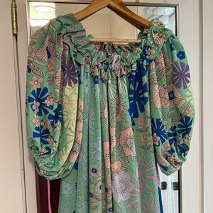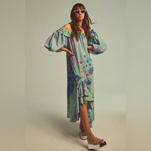 Anthropologie Oopscool Off The Shoulder Printed Dress with Ruffles