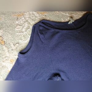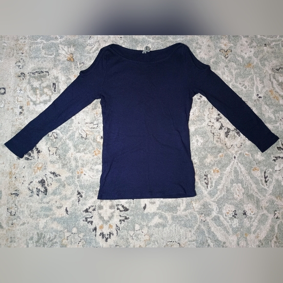 Anthropologie | Open-Shoulder 3/4 Sleeve Tee | Size XS | Navy