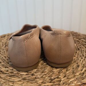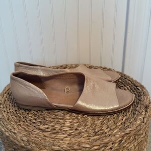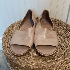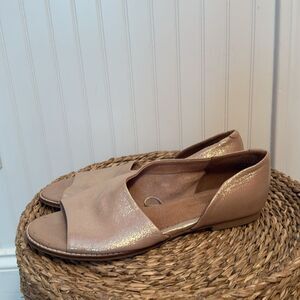 Anthropologie Open Toe Flats Metallic Beige Leather Shoes - Size: 8