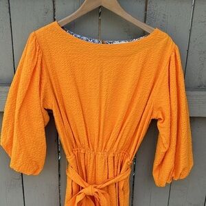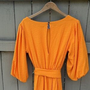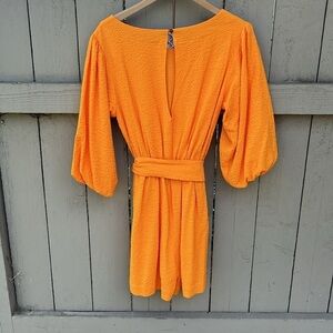 Anthropologie Orange Francesca Balloon Sleeved Textured Romper Summer Sz Small