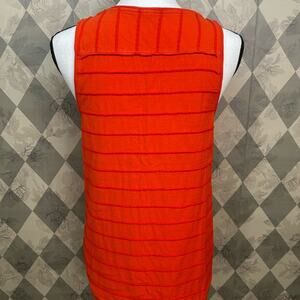 This eye-catching orange tank top from Anthropologie showcases a sleeveless design and a unique chevron pattern on the front. The scoop neckline and lightweight fabric ensure comfort and style, making it perfect for warm weather. Finished with matching binding on the armholes, this top adds a chic touch to any casual ensemble.